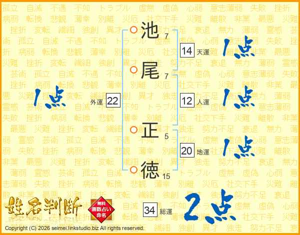 池尾正徳さんの天運は14画の1点!