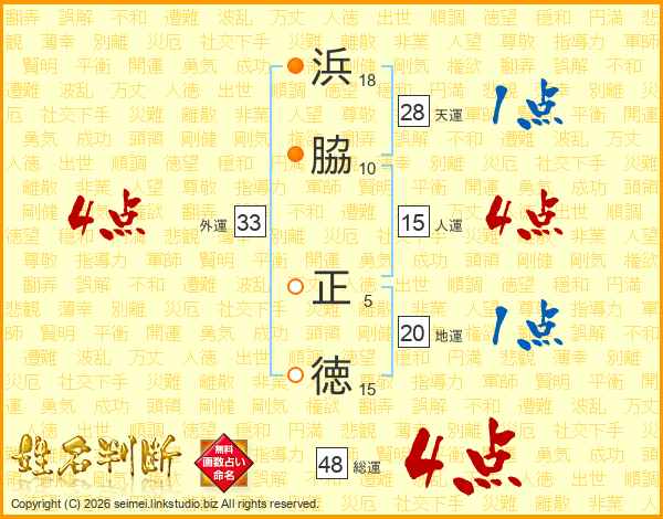 浜脇正徳さんの総運は48画の4点!