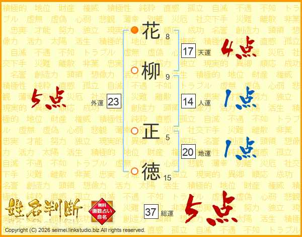 花柳正徳さんの総運は37画の5点!