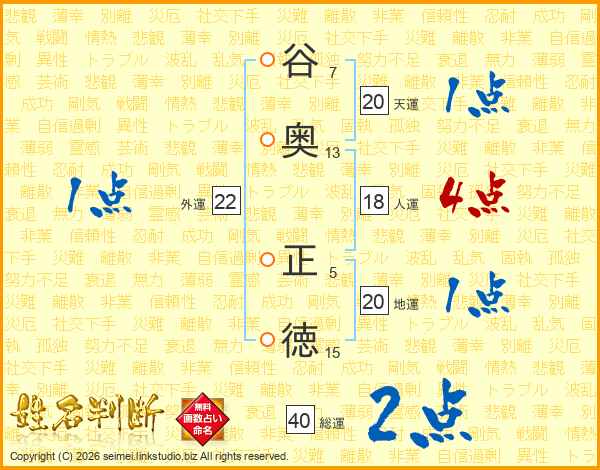 谷奥正徳さんの総運は40画の2点!