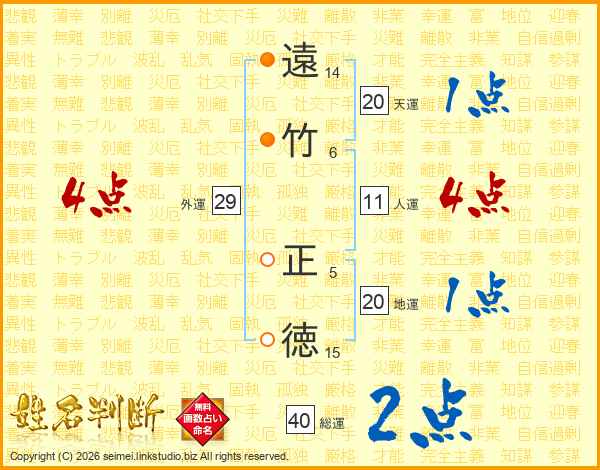 遠竹正徳さんの総運は40画の2点!