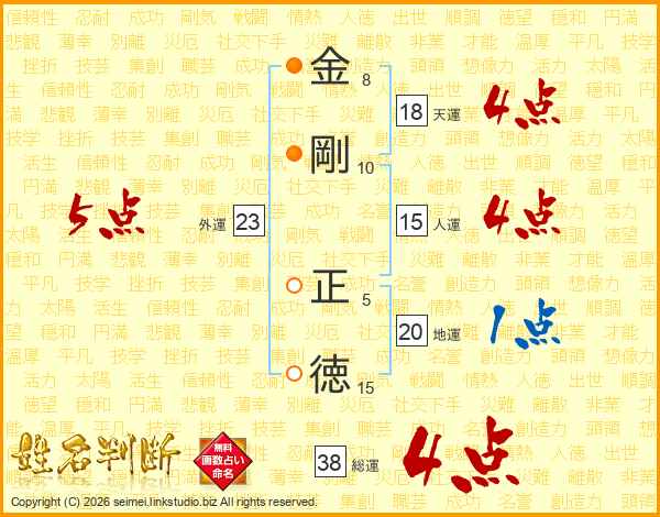 金剛正徳さんの総運は38画の4点!
