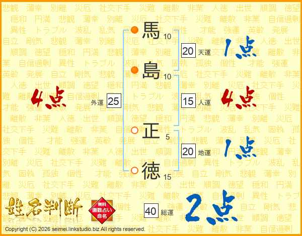 馬(10画)島(10画) 正(5画)徳(15画)