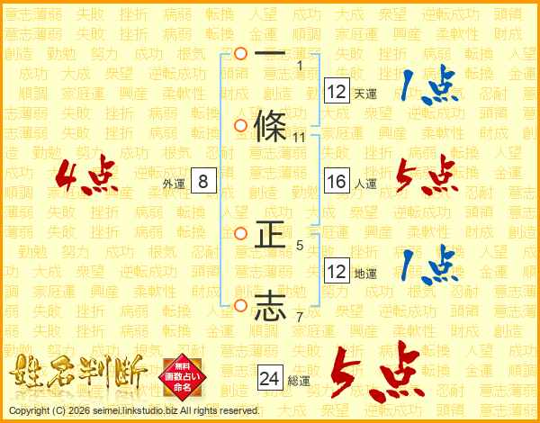 一條正志さんの総運は24画の5点!