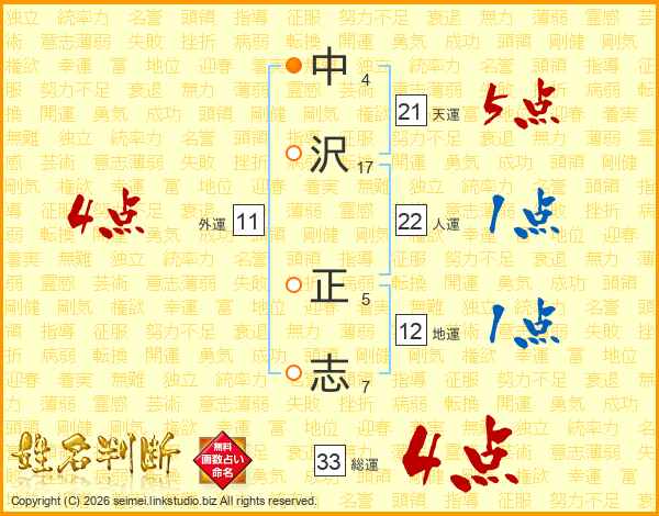 中沢正志さんの総運は33画の4点!