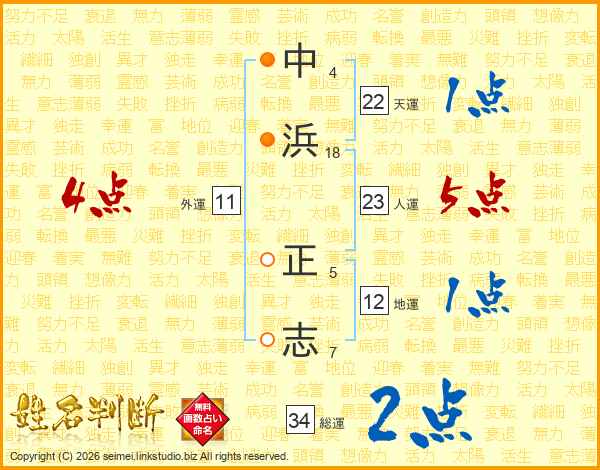 中浜正志さんの天運は22画の1点!