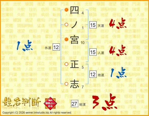 四(4画)ノ(1画)宮(10画) 正(5画)志(7画)