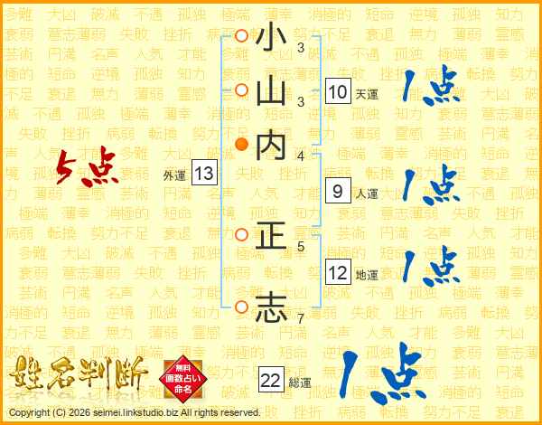小山内正志さんの総運は22画の1点!