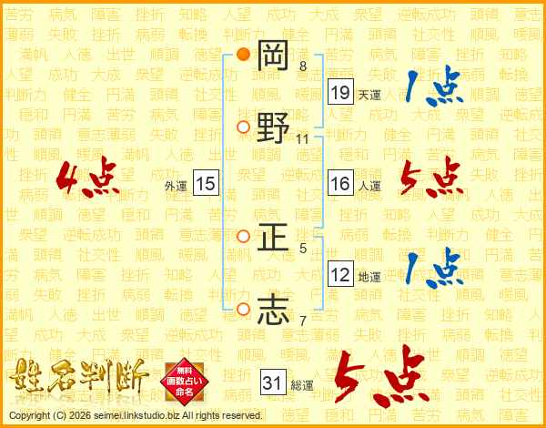 岡野正志さんの総運は31画の5点!