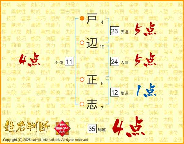 戸(4画)辺(19画) 正(5画)志(7画)