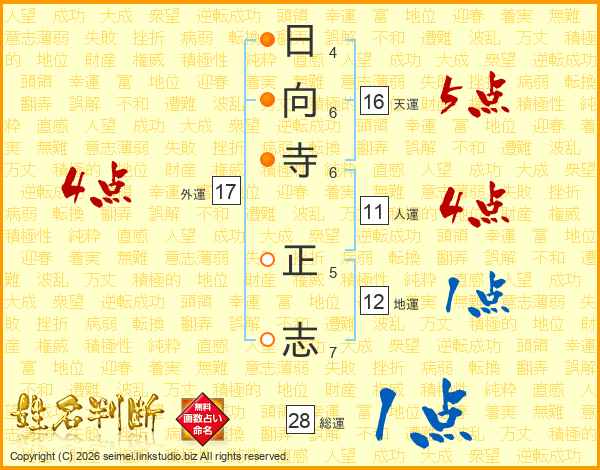 日(4画)向(6画)寺(6画) 正(5画)志(7画)