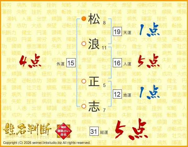 松(8画)浪(11画) 正(5画)志(7画)