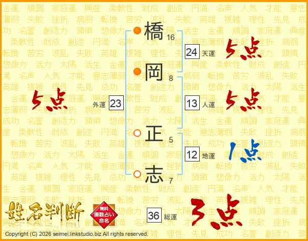 橋岡正志さんの人運は13画の5点!