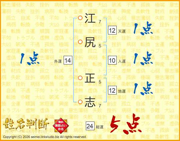 江尻正志さんの総運は24画の5点!