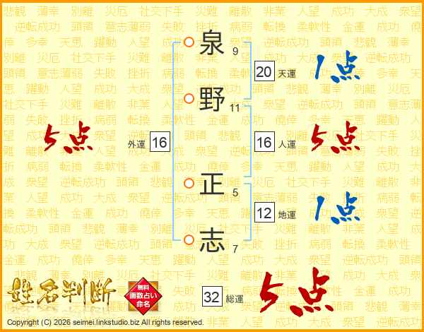 泉野正志さんの総運は32画の5点!