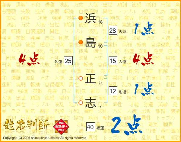 浜(18画)島(10画) 正(5画)志(7画)