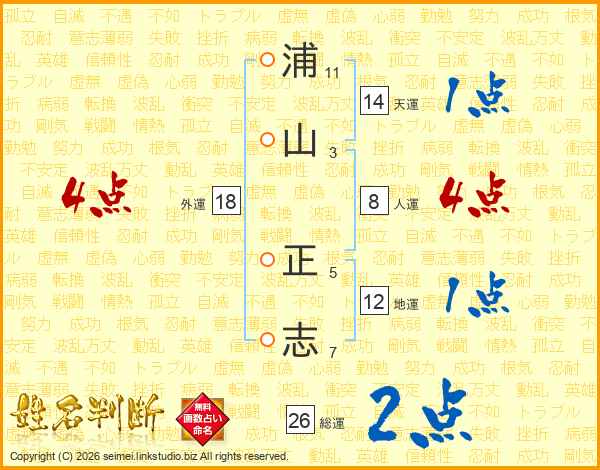 浦山正志さんの天運は14画の1点!