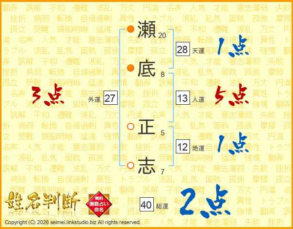 瀬底正志さんの人運は13画の5点!
