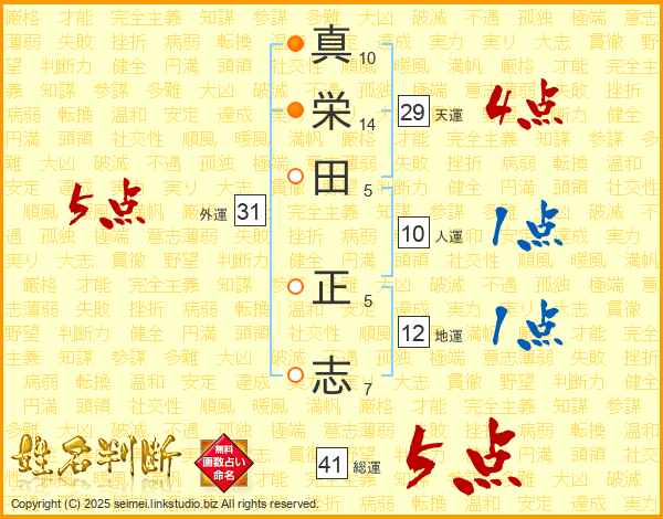 真(10画)栄(14画)田(5画) 正(5画)志(7画)