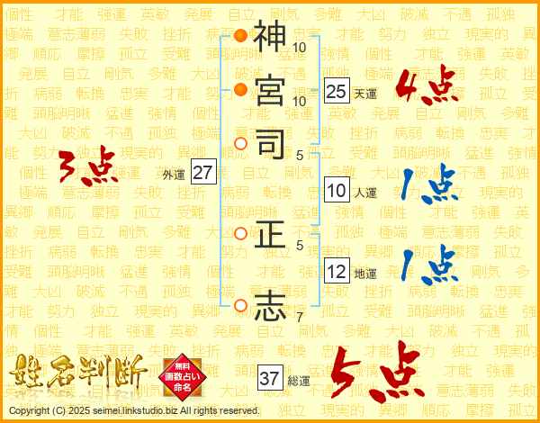 神(10画)宮(10画)司(5画) 正(5画)志(7画)