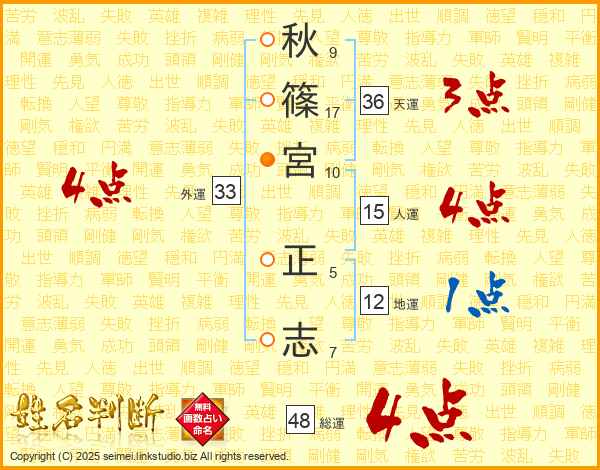秋(9画)篠(17画)宮(10画) 正(5画)志(7画)