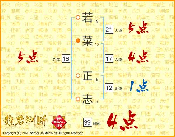 若菜正志さんの総運は33画の4点!
