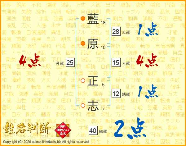 藍(18画)原(10画) 正(5画)志(7画)