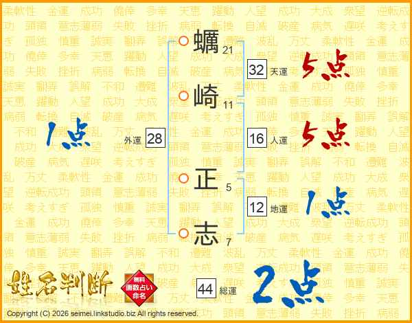 蠣崎正志さんの天運は32画の5点!