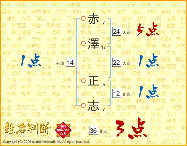 赤(7画)澤(17画) 正(5画)志(7画)