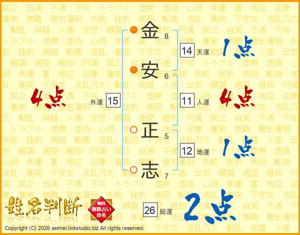 金(8画)安(6画) 正(5画)志(7画)
