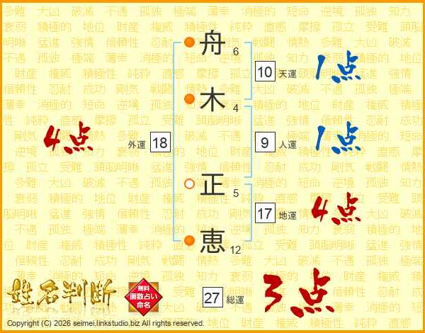 舟(6画)木(4画) 正(5画)恵(12画)