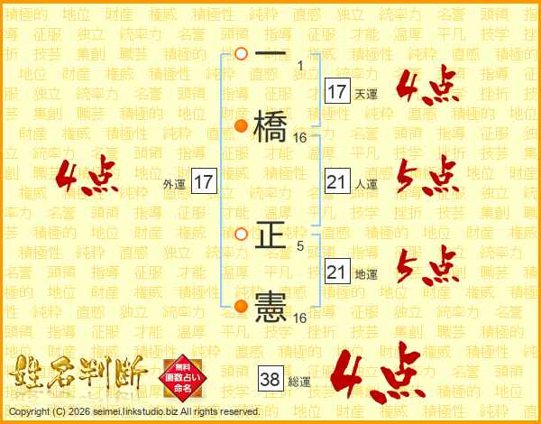 一橋正憲さんの総運は38画の4点!