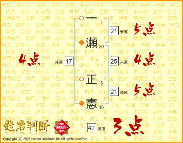 一瀬正憲さんの人運は25画の4点!