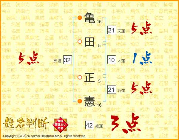 亀田正憲さんの天運は21画の5点!