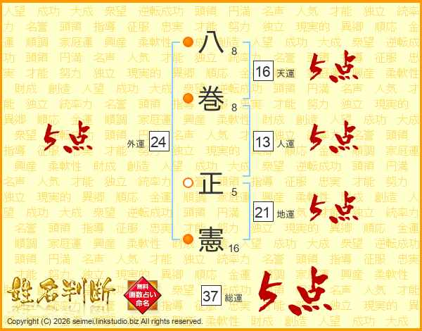八巻正憲さんの総運は37画の5点!