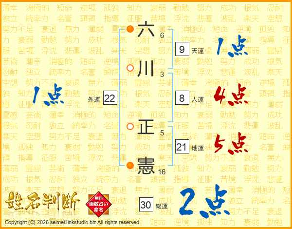 六川正憲さんの総運は30画の2点!