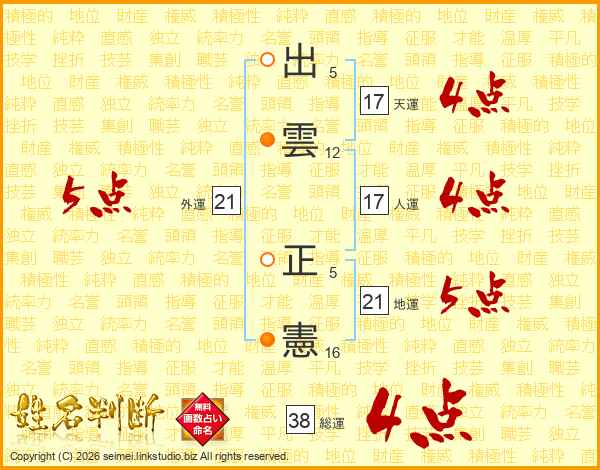 出雲正憲さんの総運は38画の4点!