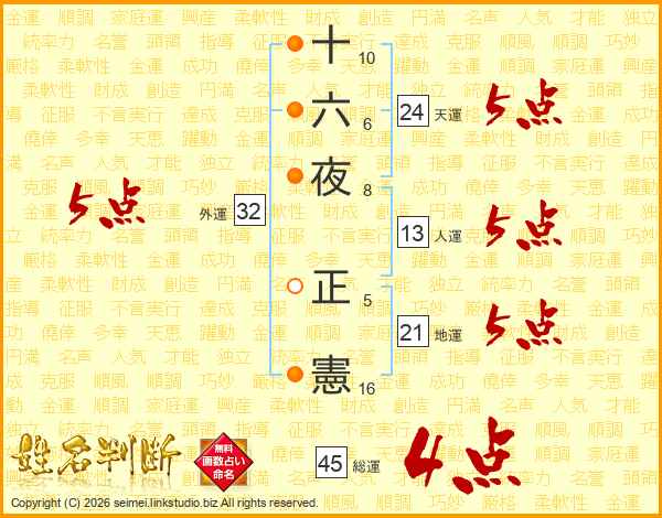 十(10画)六(6画)夜(8画) 正(5画)憲(16画)
