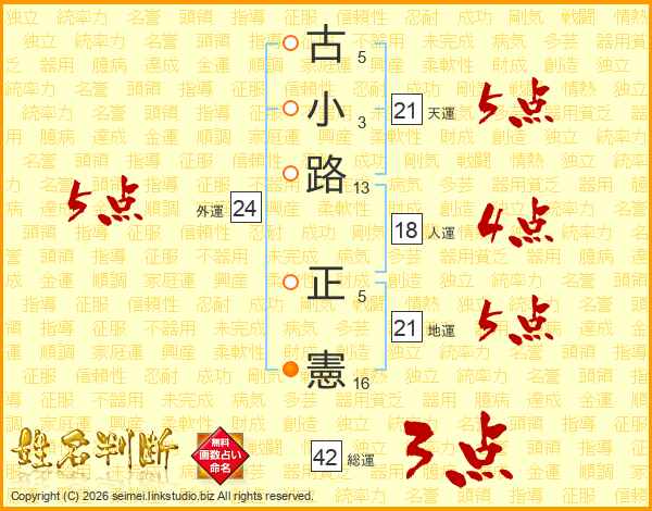 古小路正憲さんの天運は21画の5点!