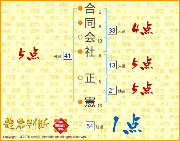 合(6画)同(6画)会(13画)社(8画) 正(5画)憲(16画)