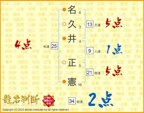 名(6画)久(3画)井(4画) 正(5画)憲(16画)