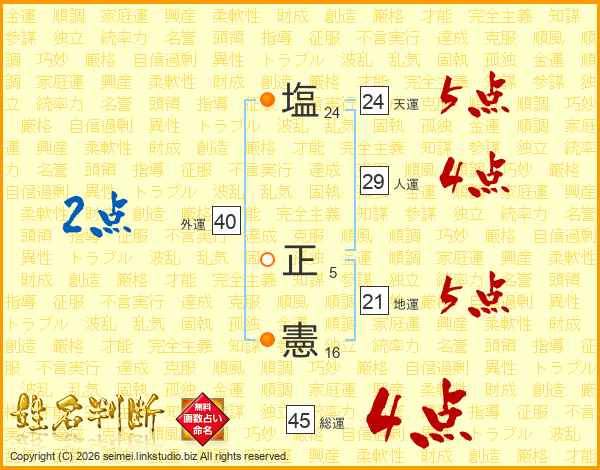 塩(24画) 正(5画)憲(16画)