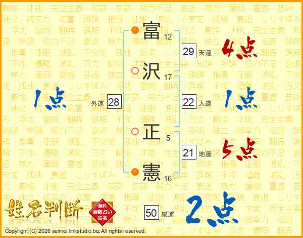 富(12画)沢(17画) 正(5画)憲(16画)