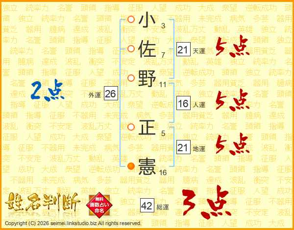 小佐野正憲さんの天運は21画の5点!