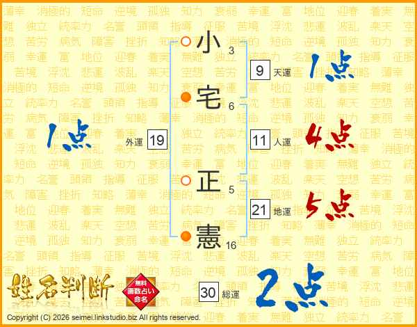 小宅正憲さんの総運は30画の2点!
