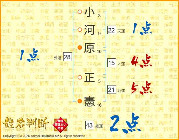 小(3画)河(9画)原(10画) 正(5画)憲(16画)