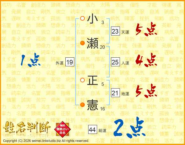 小(3画)瀬(20画) 正(5画)憲(16画)