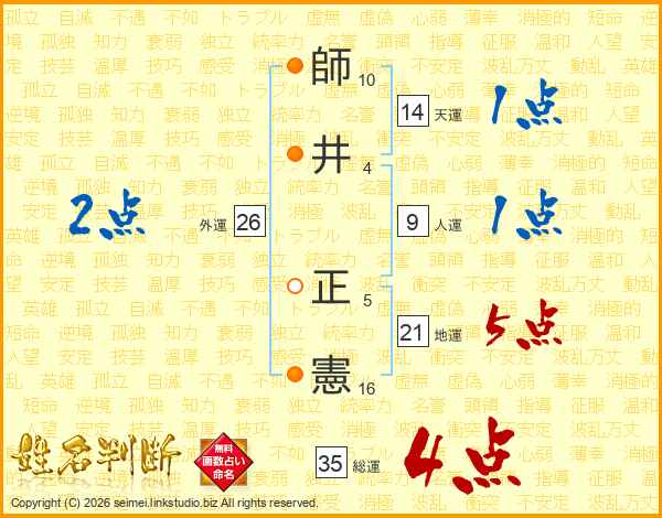 師(10画)井(4画) 正(5画)憲(16画)