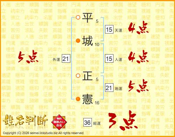 平城正憲さんの地運は21画の5点!