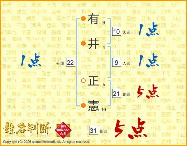 有井正憲さんの総運は31画の5点!